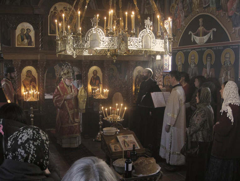 Gudstjenesten ble forrettet på norsk og kirkeslavisk. Fader Johannes forklarte også på engelsk. De norske som kom for å være med oss, forstod og respekterte alt som foregikk. Også eldre mennesker sto gjennom hele gudstjenesten, selv om fader Johannes sa klart ifra at de godt kunne sette seg.