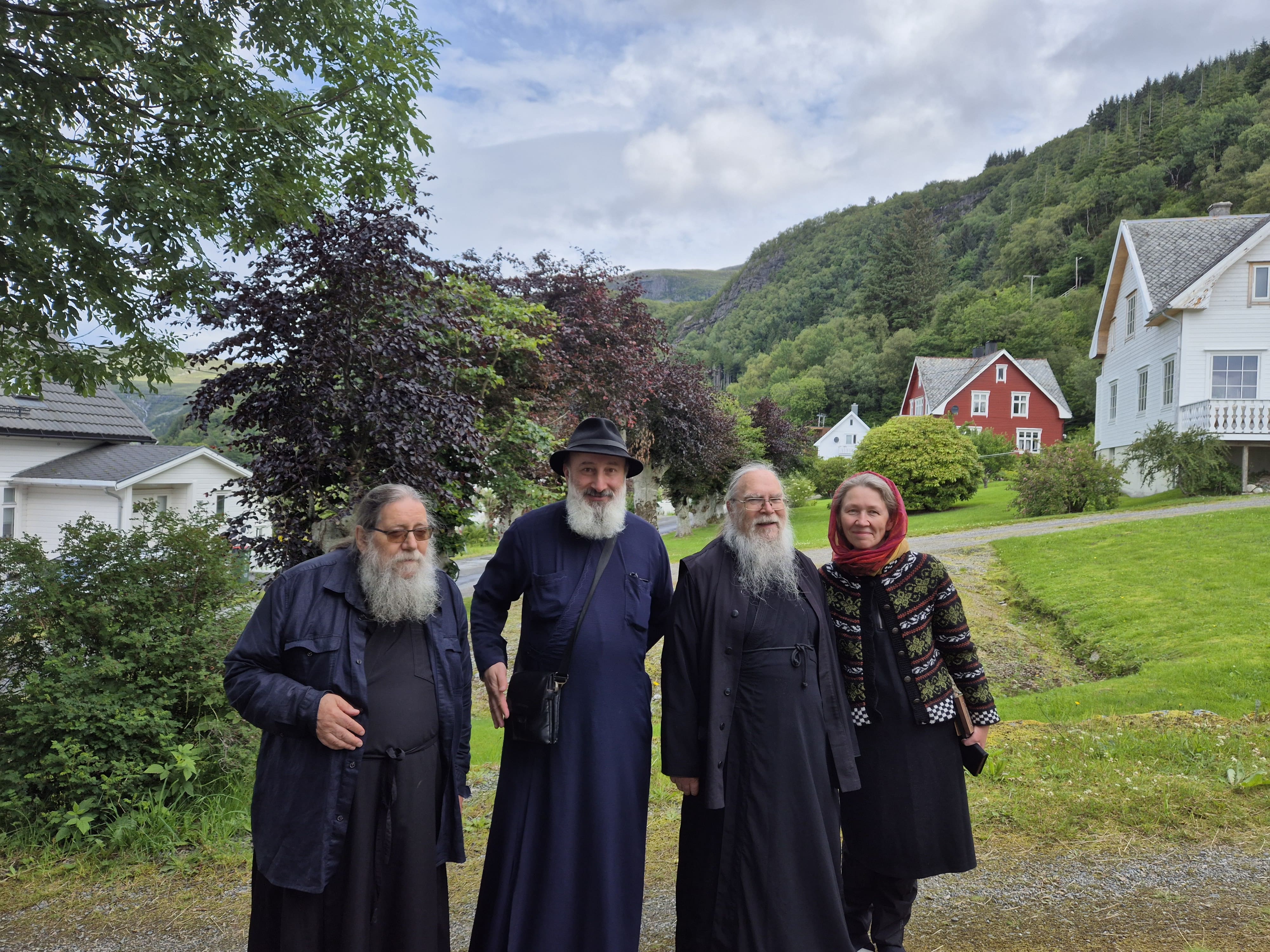 Fr. Serafim, presten fra Georgia, fr. Johannes og Anna etter kirkekaffi.